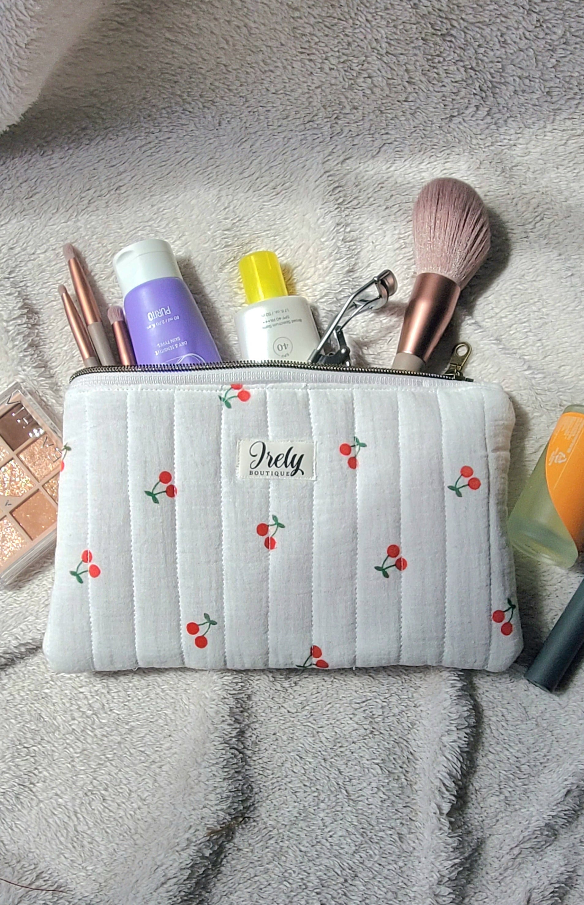 Sweet and playful, this hand-quilted cherry pouch brings a burst of color and charm to your collection. The vibrant red cherries pop against the soft fabric, making it a cheerful and functional accessory for storing your small essentials like coins, cosmetics, or jewelry. Its compact size and handmade touch make it an ideal gift or a fun treat for yourself.